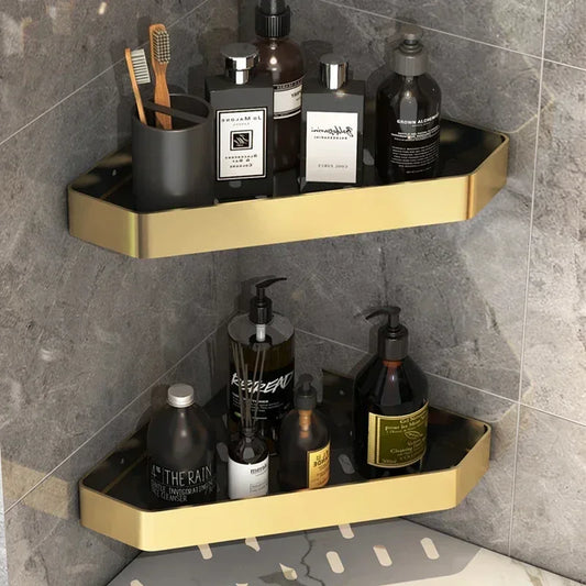 Aluminum Bathroom Shelf with Hooks and Toilet Paper Holder