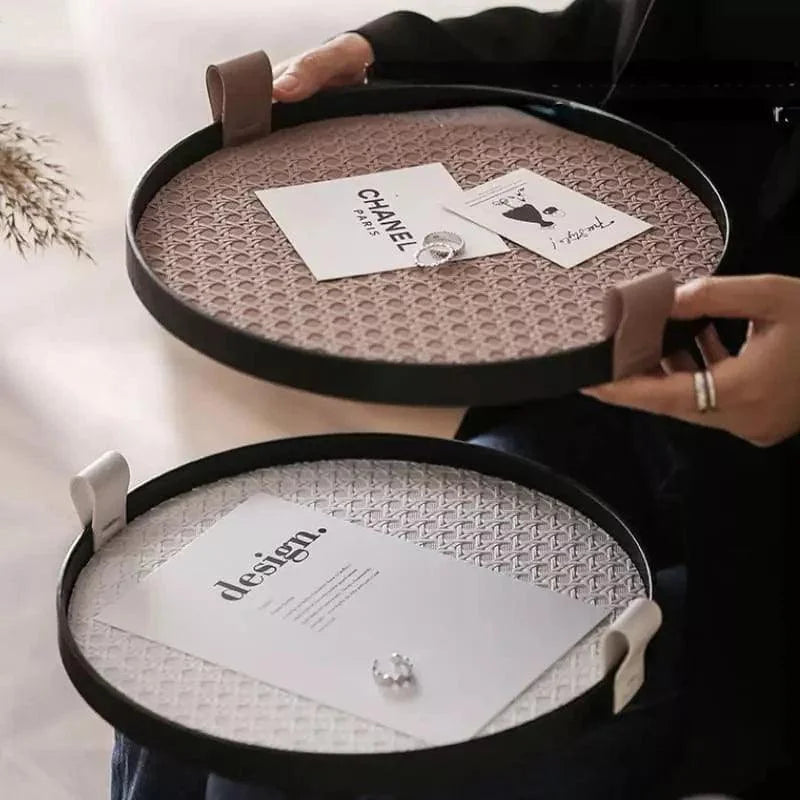 Chic Round Tray with Handle for Living Room and Bathroom Decor